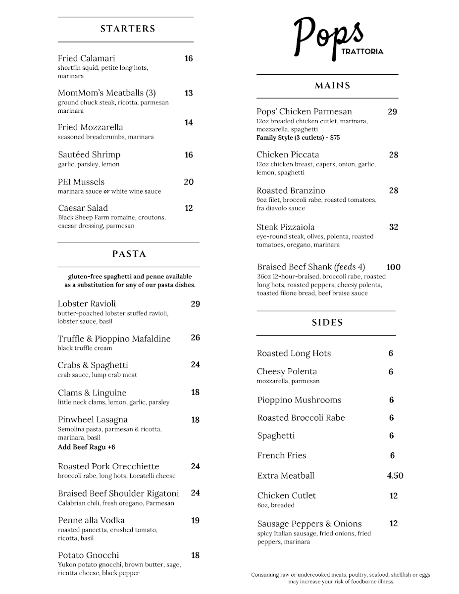 Pops Trattoria Menu has the kind of comfort-driven Italian dishes that make you slow down for a moment before deciding what to order. Tucked along 34 W Merchant St in Audubon, this spot leans into classics with a warm, homemade vibe, and the menu feels like an invitation to settle in and enjoy. You’ll find familiar favorites-think hearty pastas, crisp pizzas, and shareable appetizers-yet everything has a little personality, the sort that makes you want to try more than one thing.